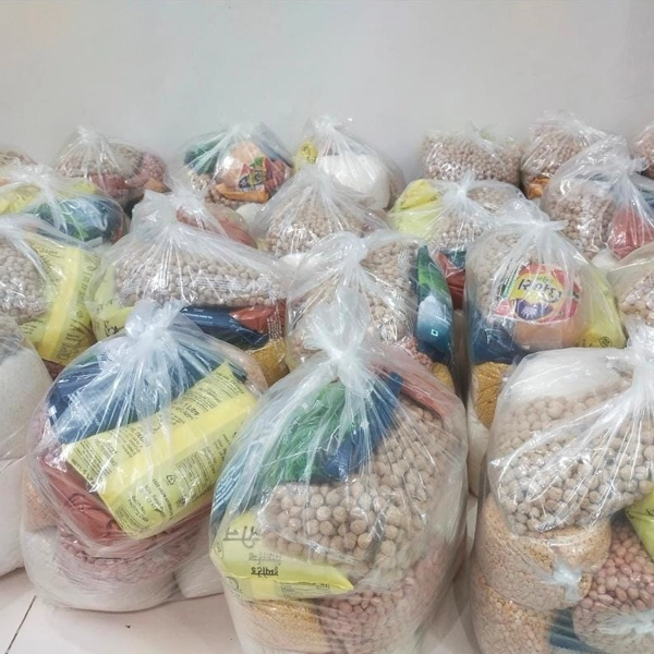 Monthly grocery kits distributed to low-income families, widows, elderly, and disaster-affected households.