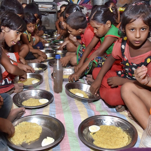 We supplement mid-day meal programs at community centers and informal schools to prevent hunger in children.