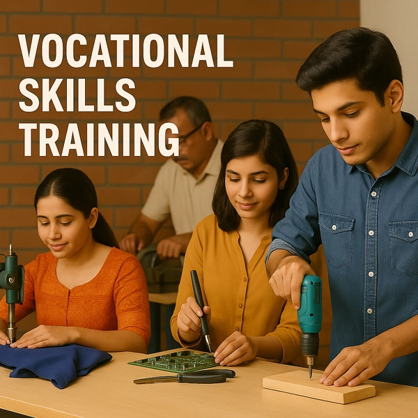 We offer practical skill programs in tailoring, electrical, carpentry, computers, and more for rural youth.